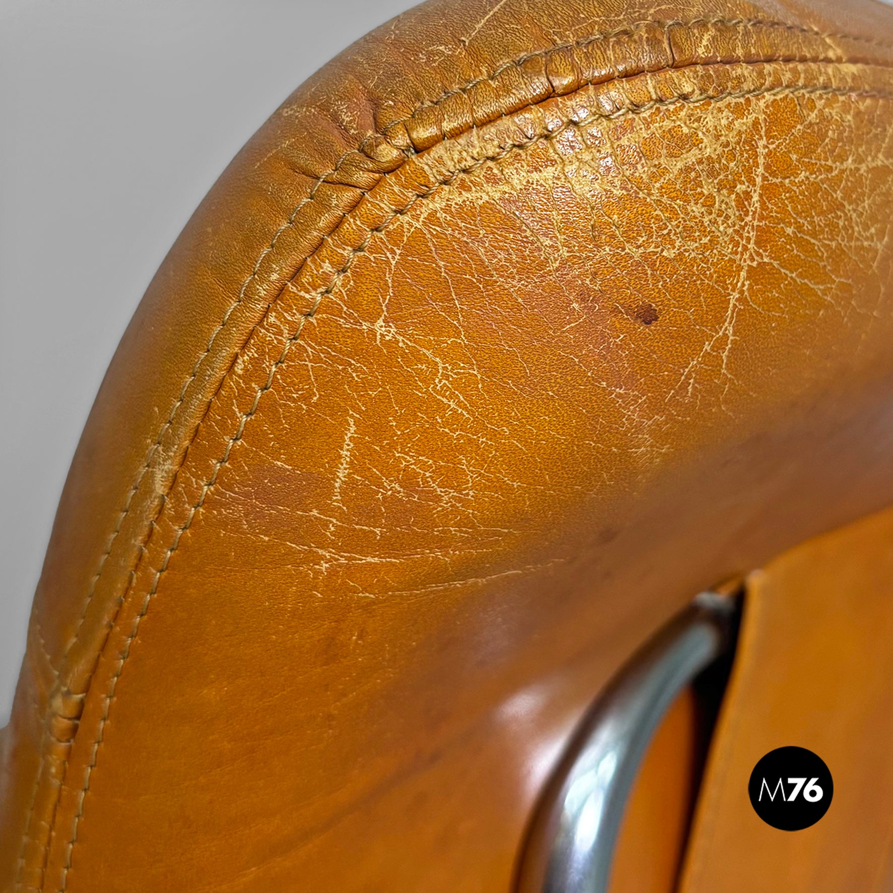 Good condition. Light marks and stains on the leather. The metal shows scattered signs of use and age.