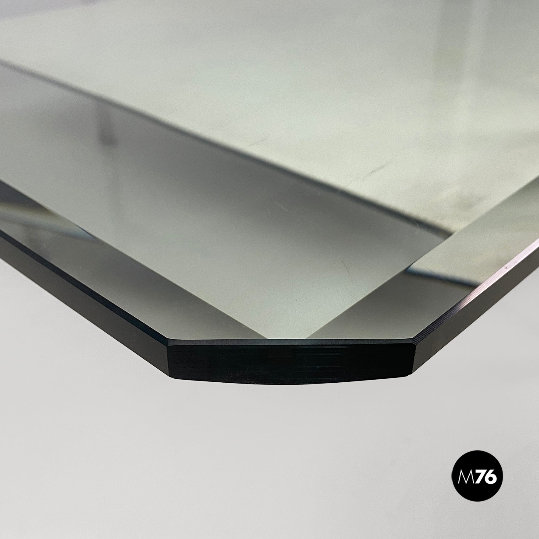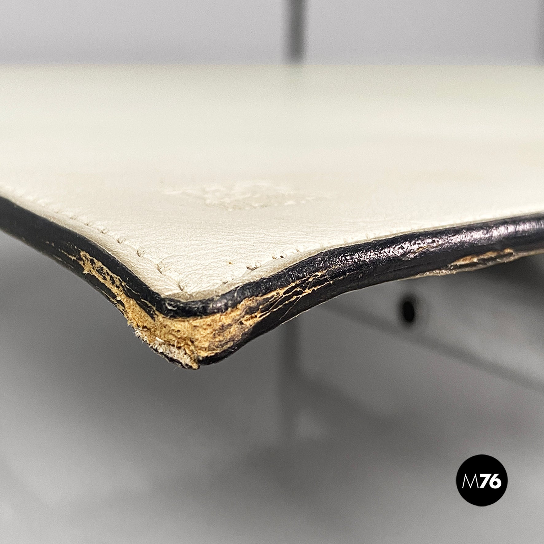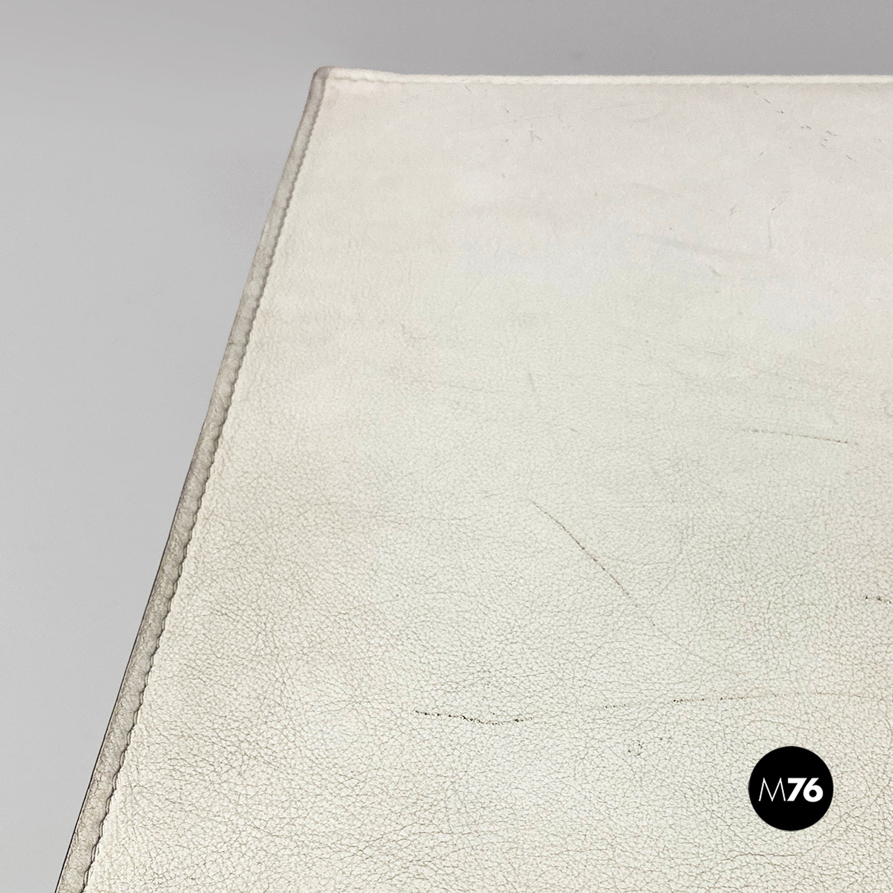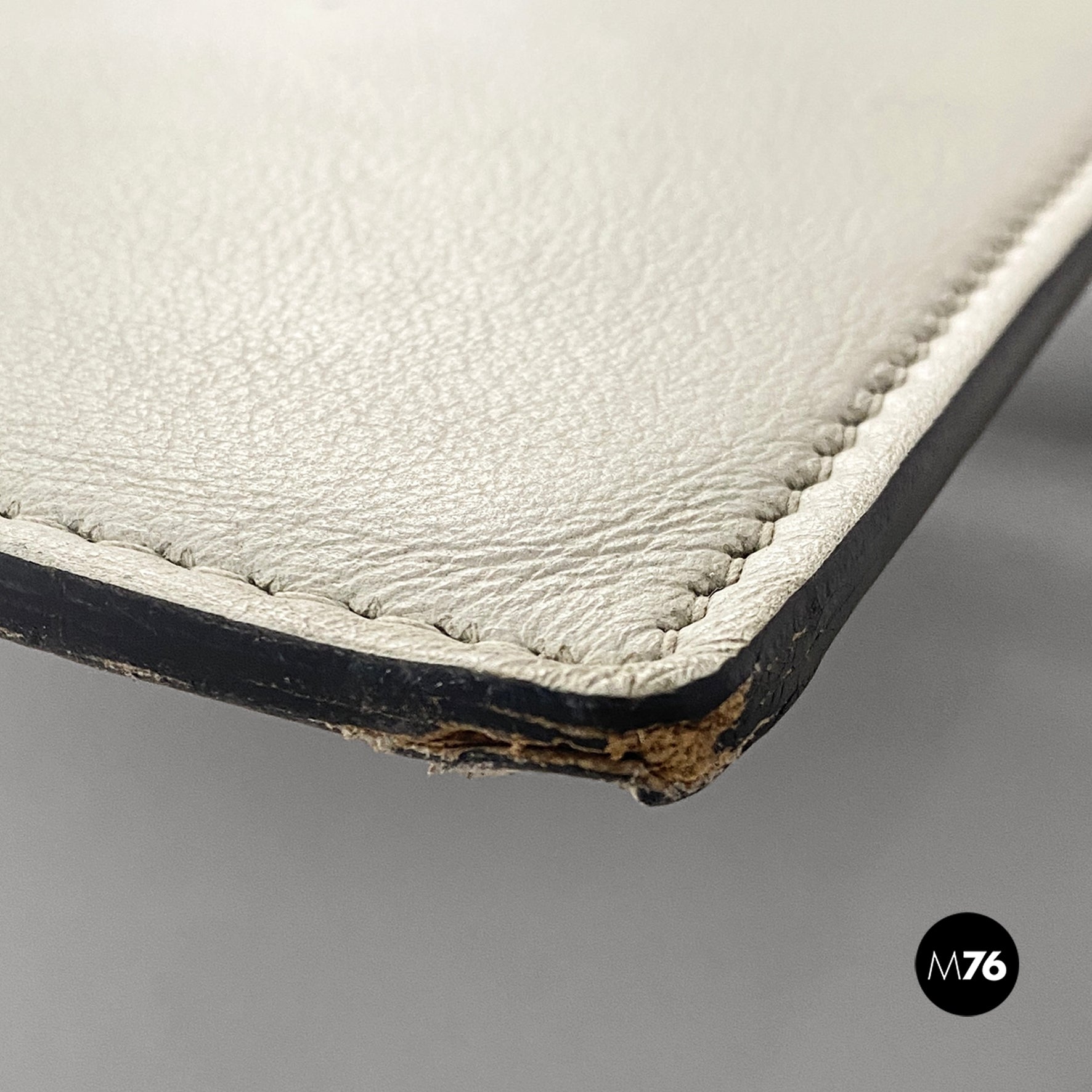 Coffee table model Diesis with two tops, one in clear cut glass and the other covered in white leather and with steel legs.
