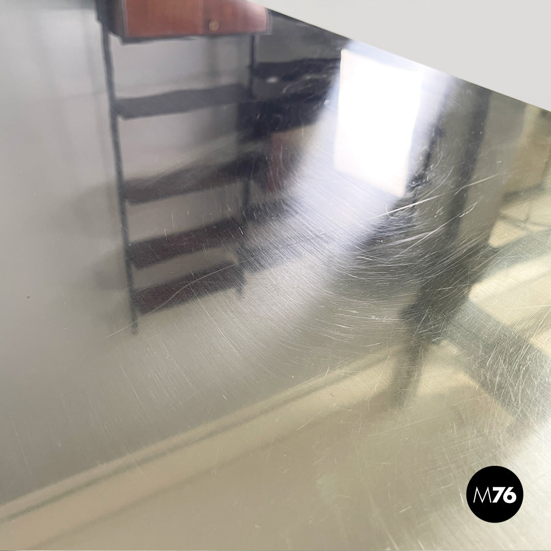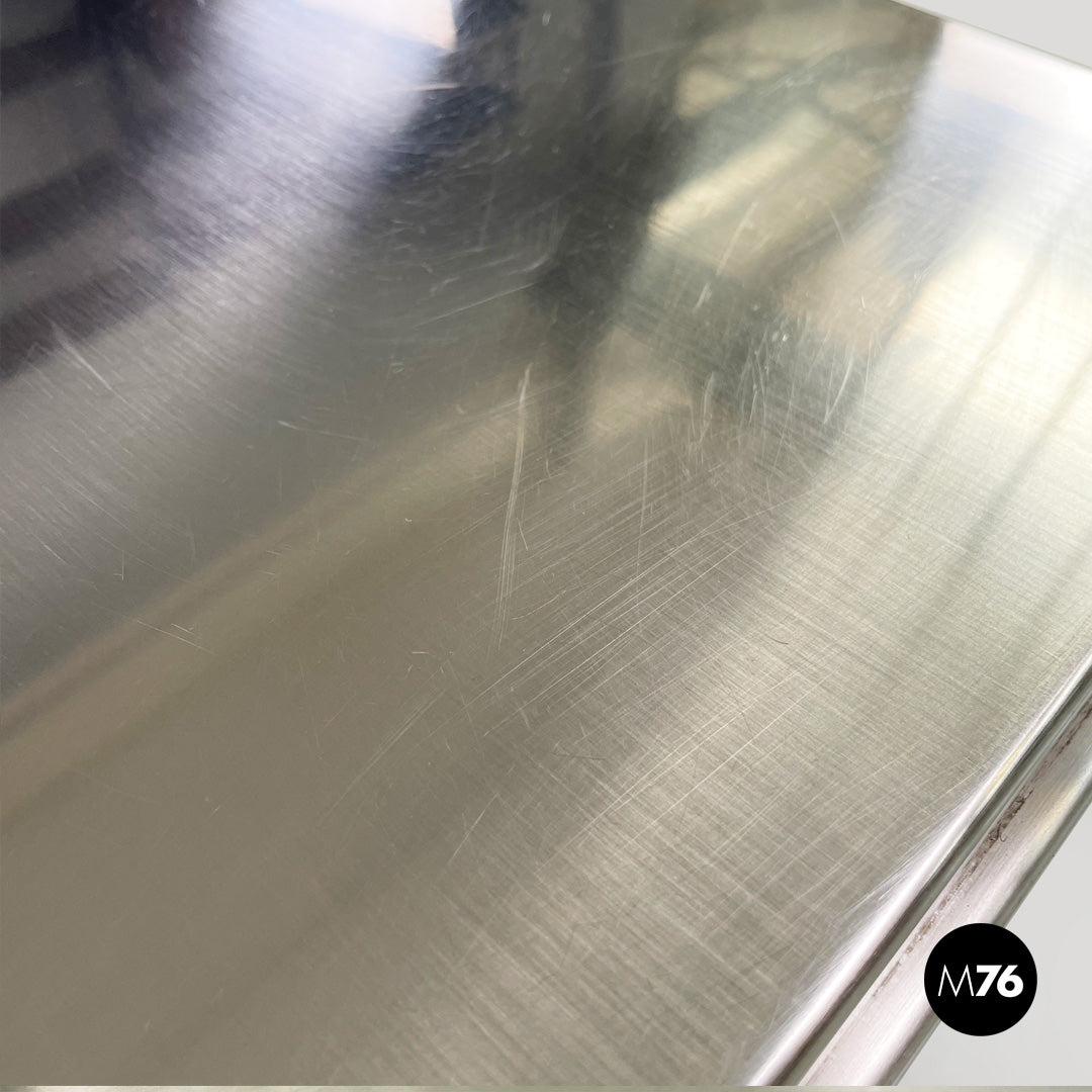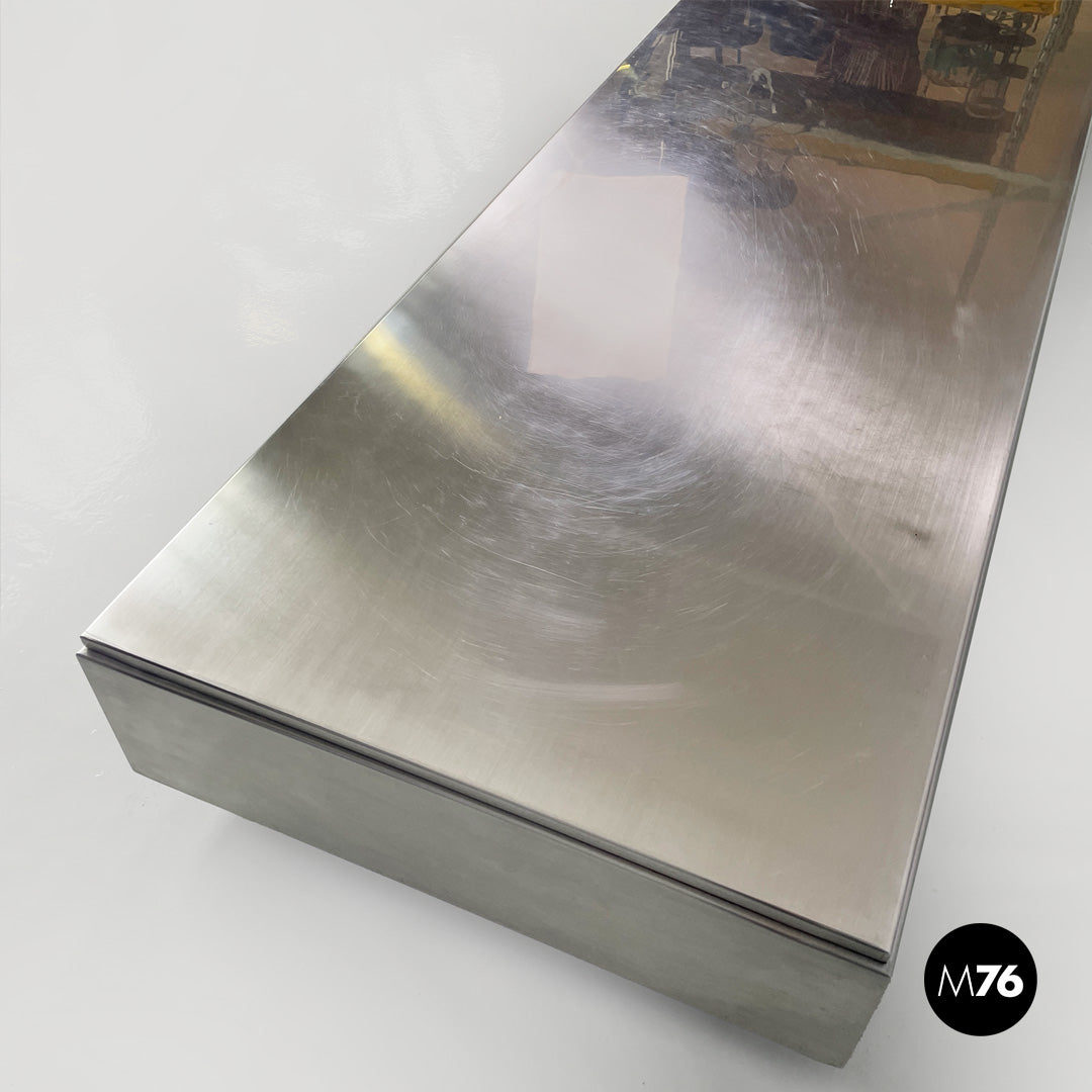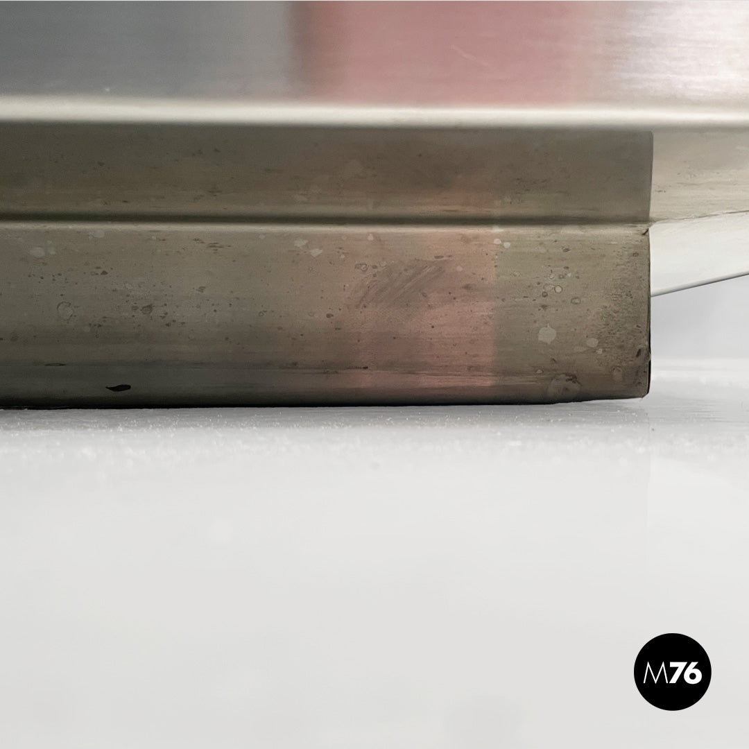 Rectangular coffee table made entirely of steel. The metal base is narrower. The corners are rounded.