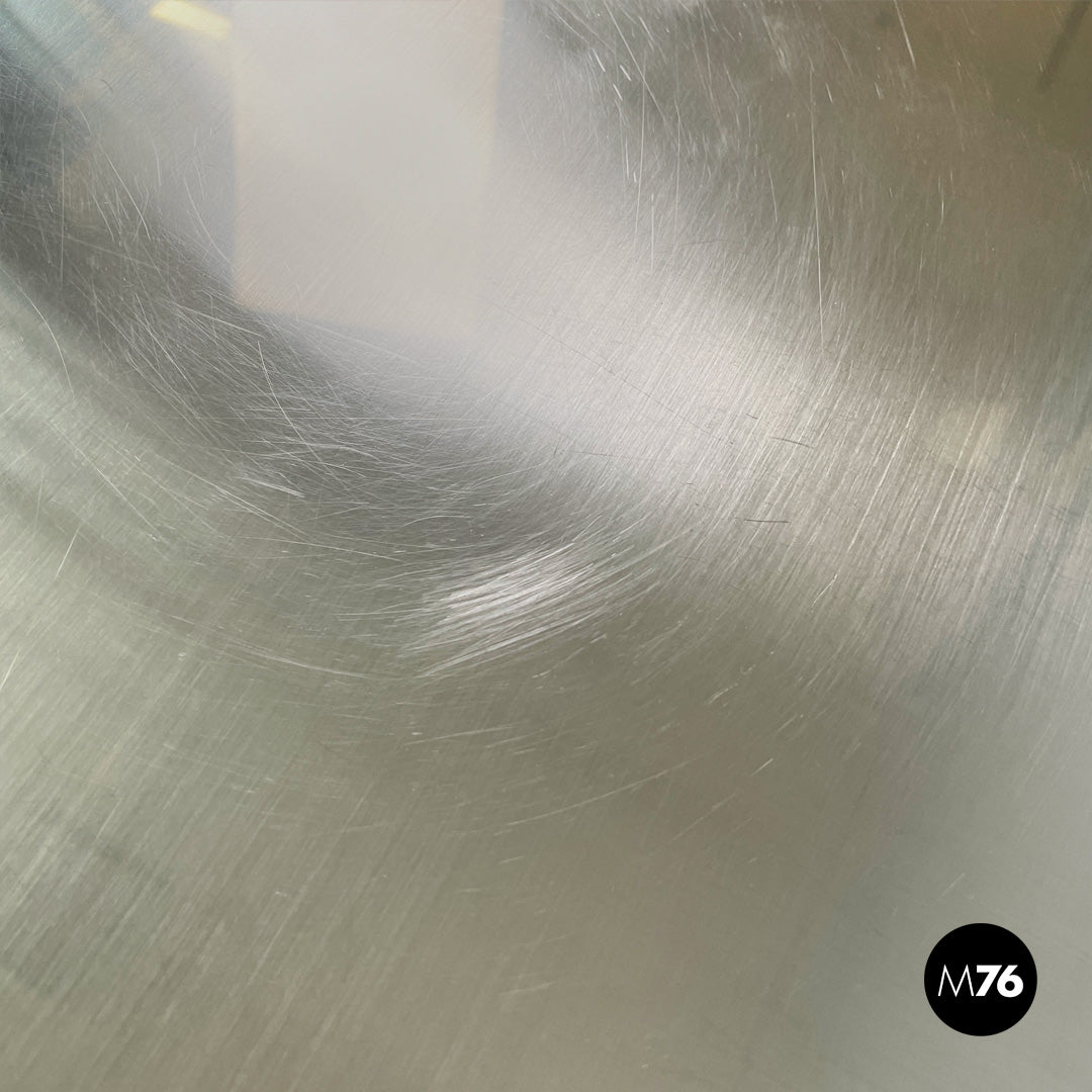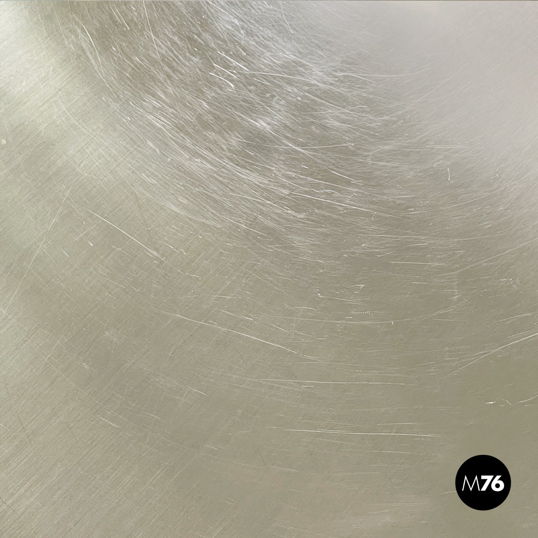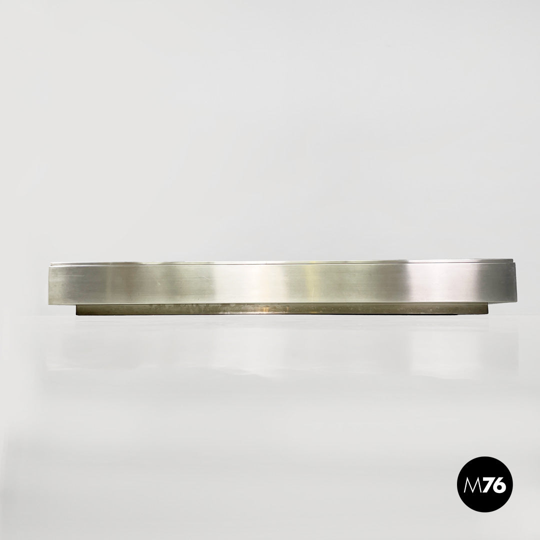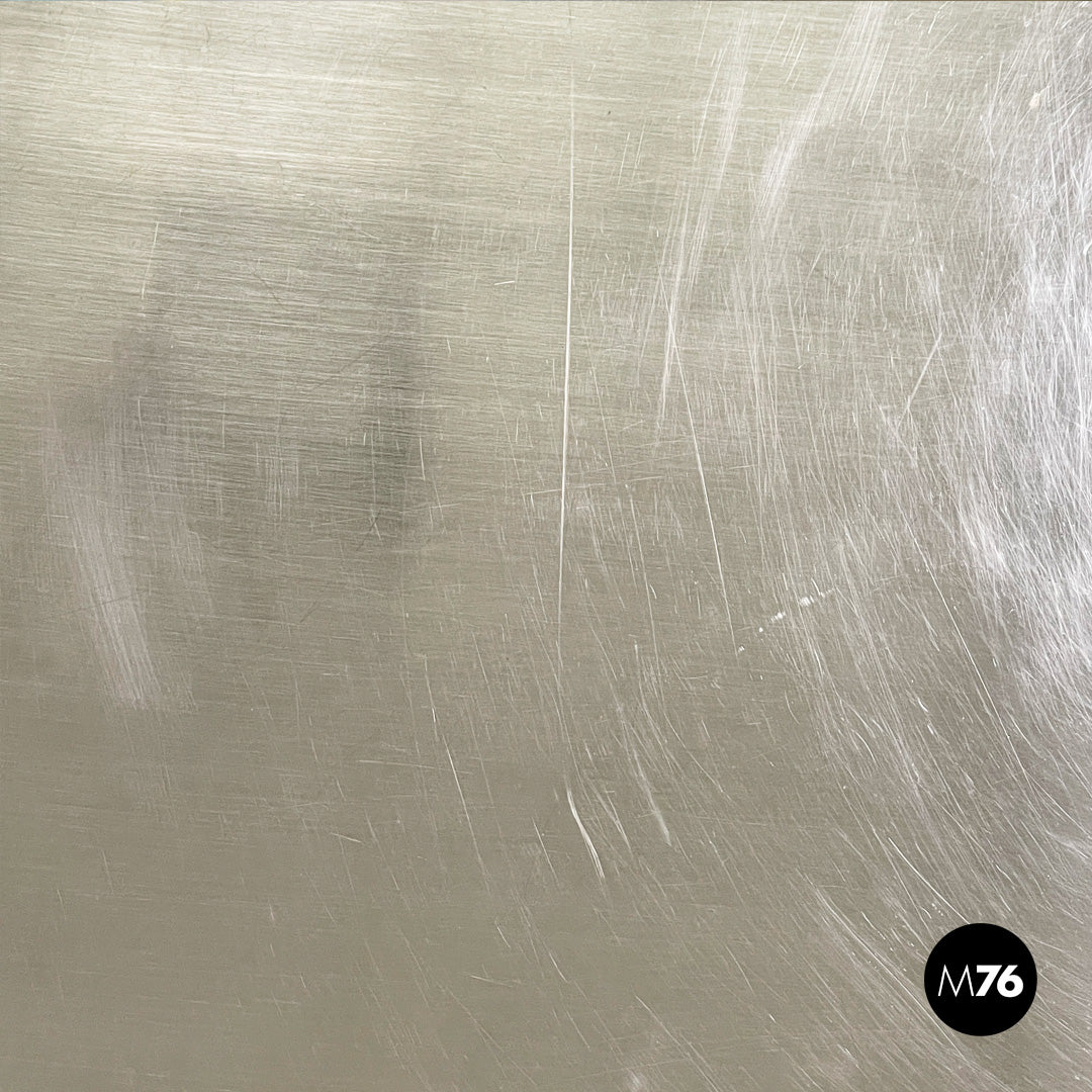 Rectangular coffee table made entirely of steel. The metal base is narrower. The corners are rounded.