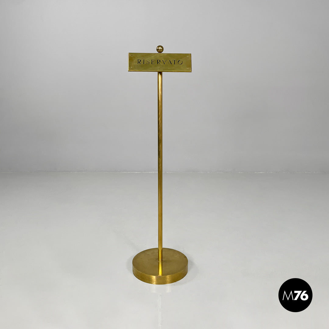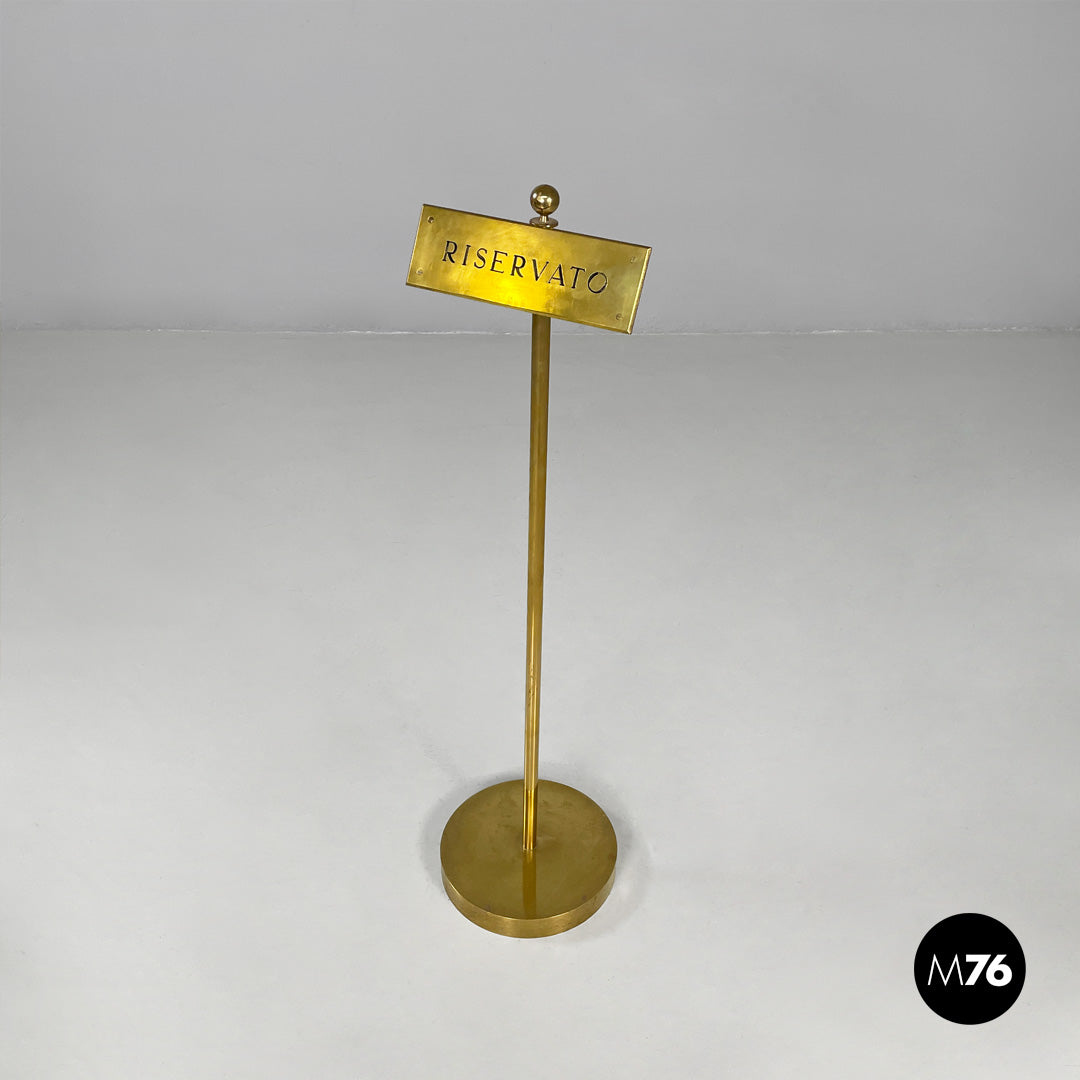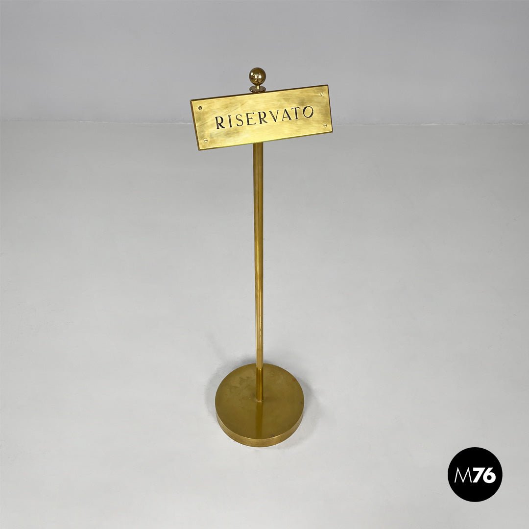 Sign or signboard made entirely of brass. The front features a black plaque with the word "reserved." The central shaft has a decorative knob on the top and a round base.