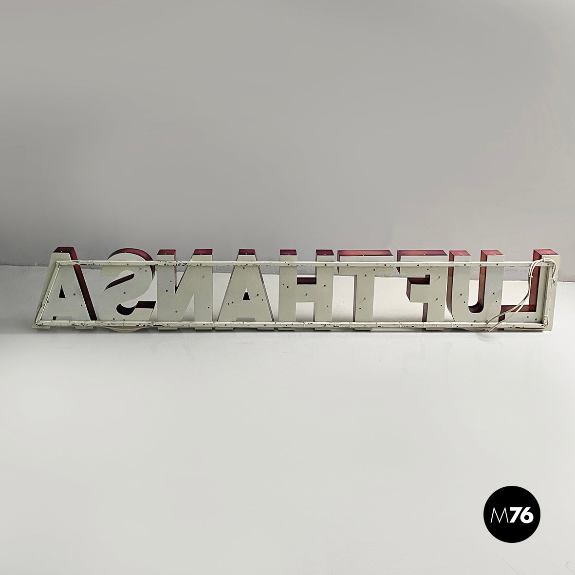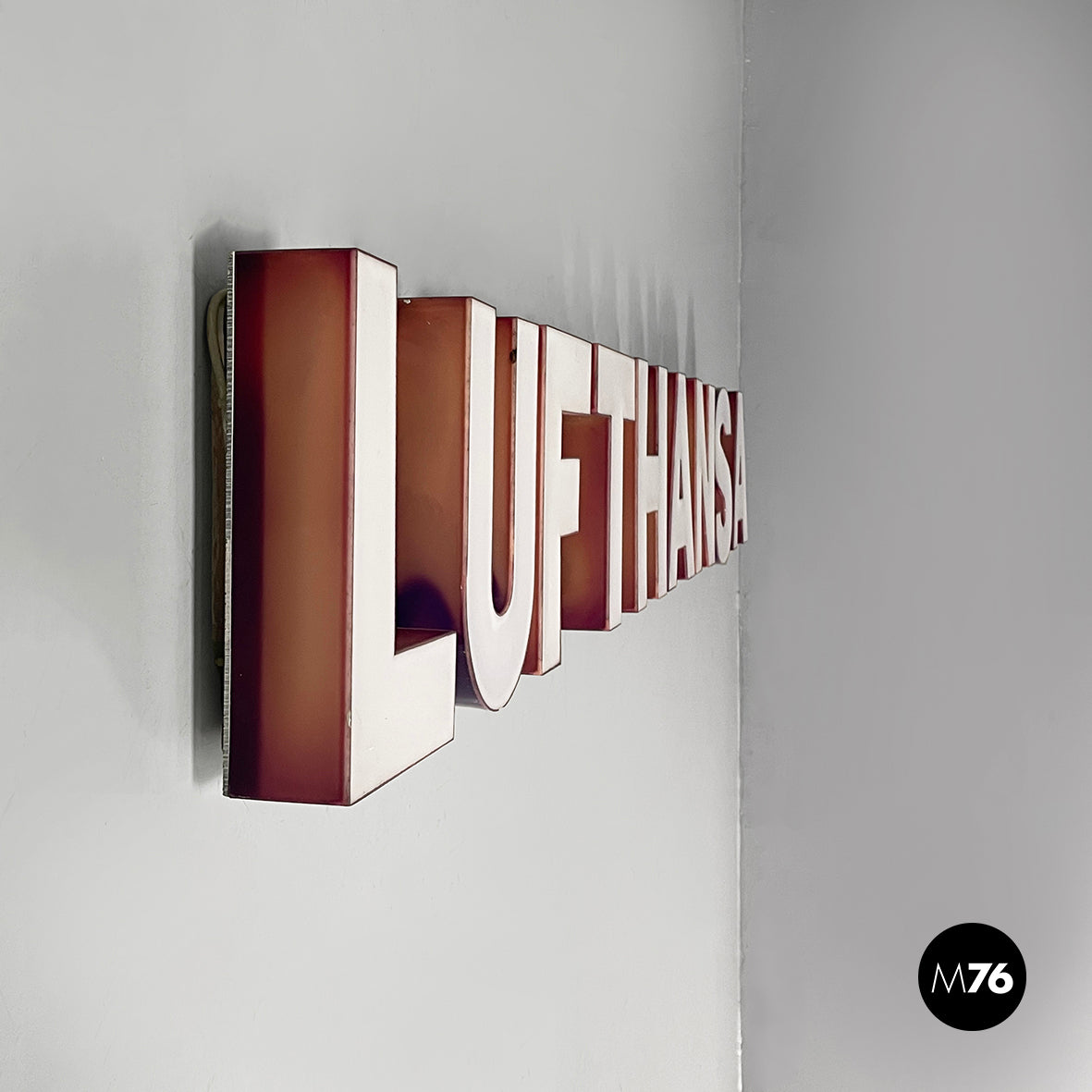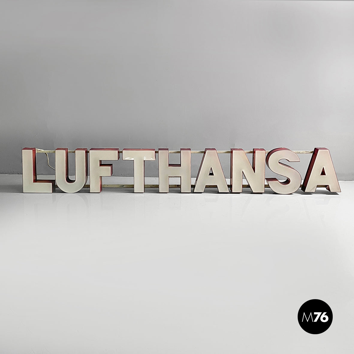 Sign Lufthansa in white plexiglass, 1970s