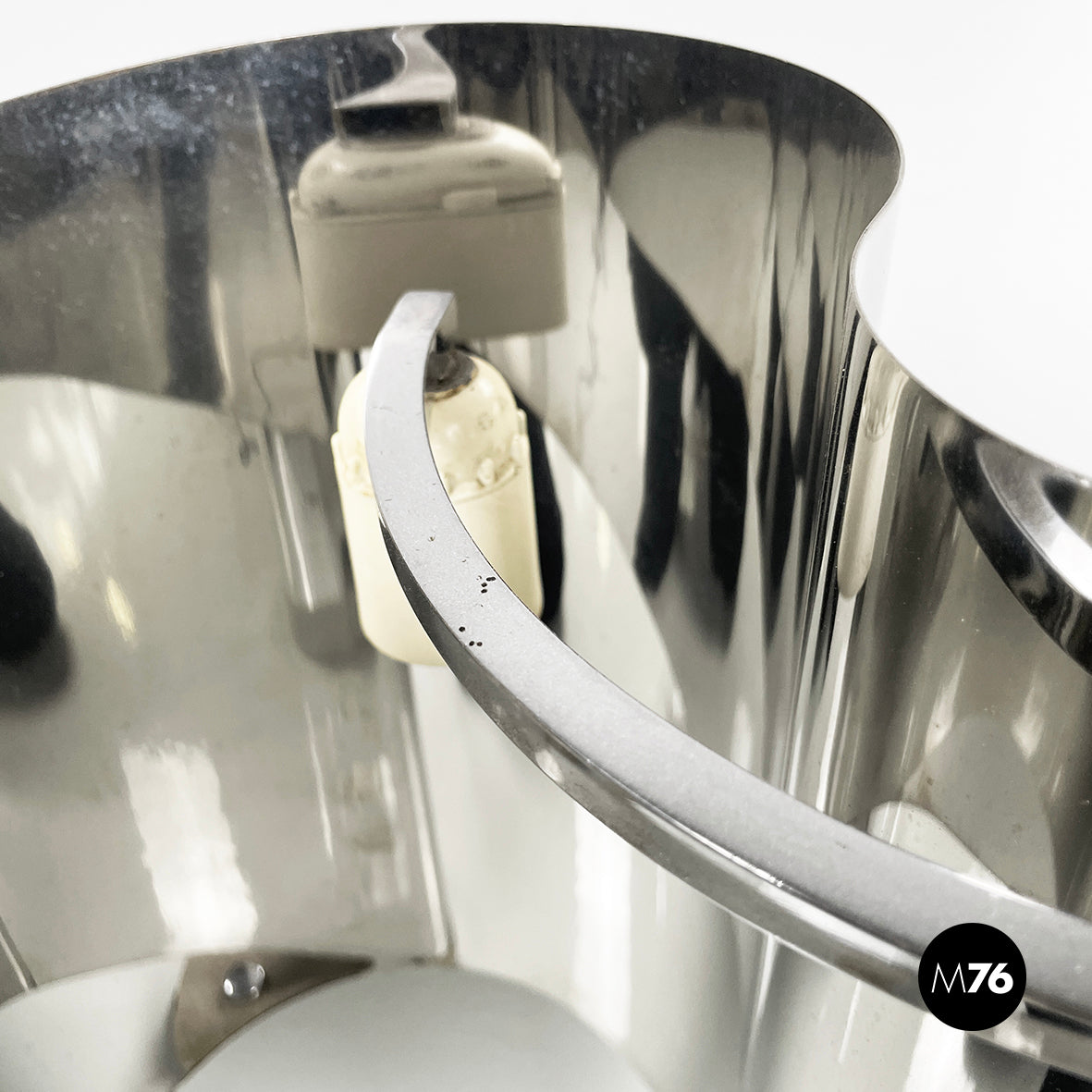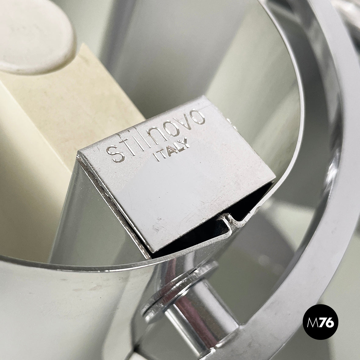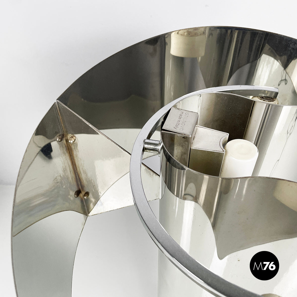 Produced by Stilnovo in 1970s and designed by Costantino Corsini and Giorgio Wiskemann. Logo on the lampshade.
