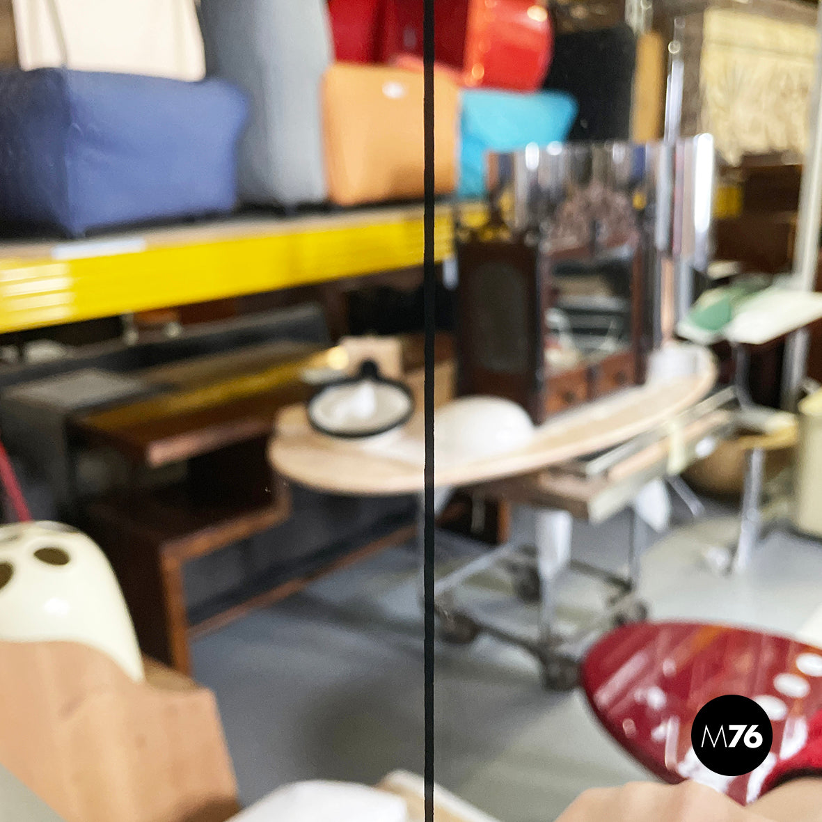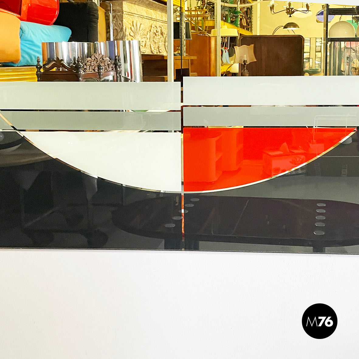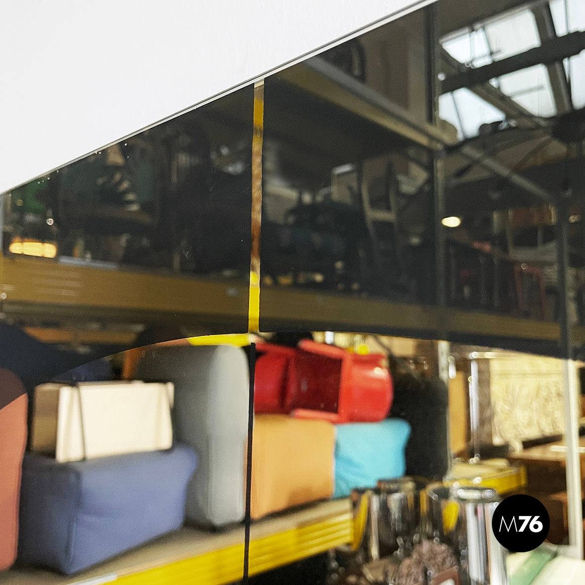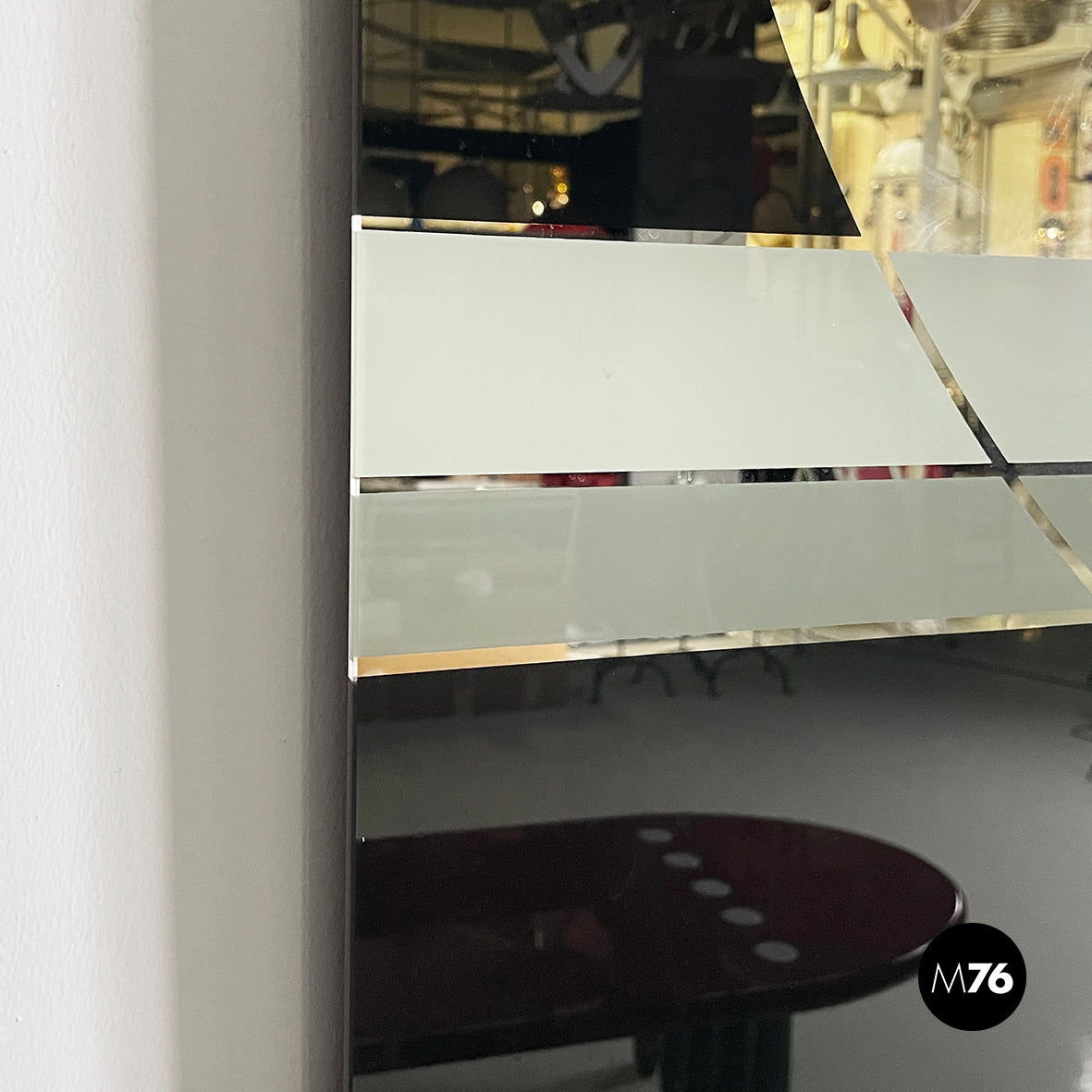 Wall mirror from Morphos series, rectangular in shape. On the profile there are geometric decorations in black, red and gray.