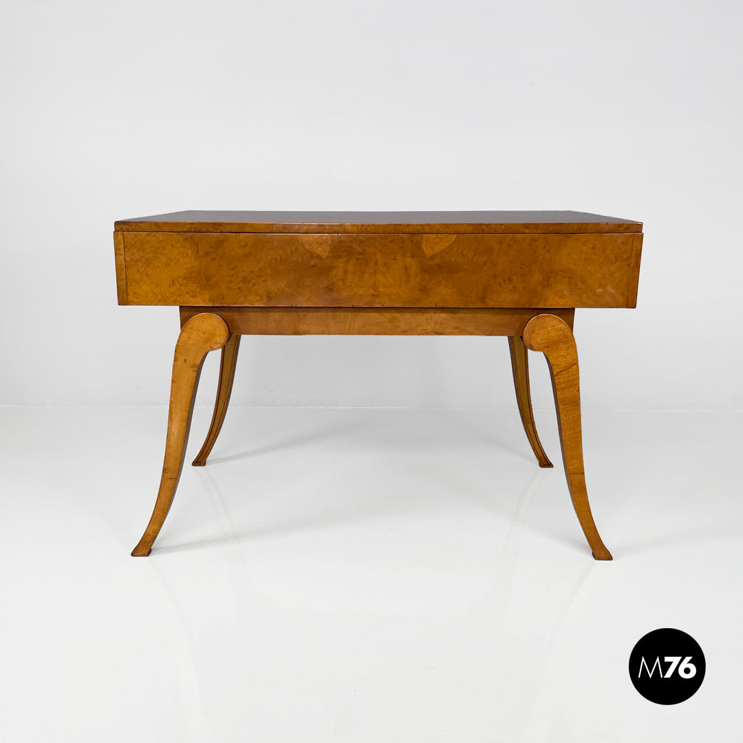 Desk with rectangular top entirely in walnut. On the front the desk has three hidden drawers.