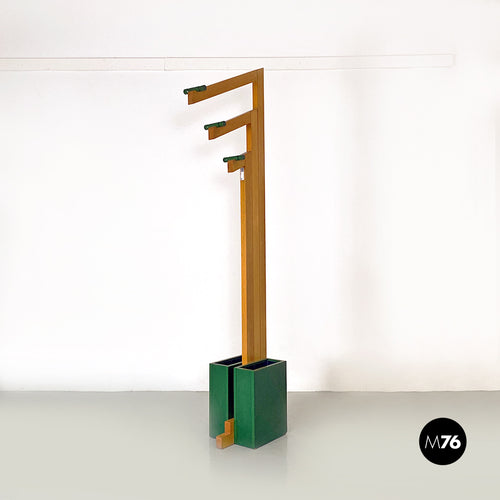 Natural and green wood coat stand with umbrella container, 1980s
