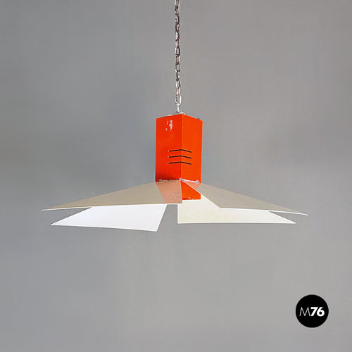 Orange and white metal chandelier, 1980s
