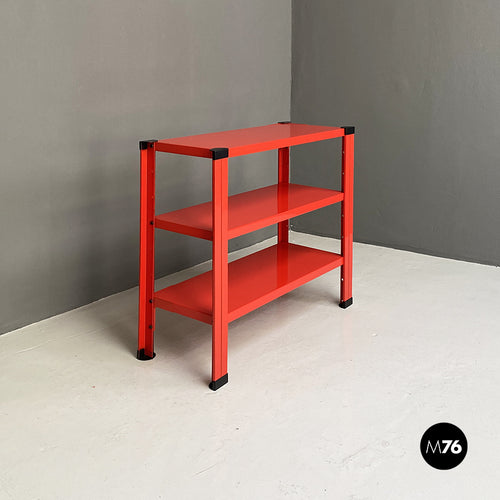 Red three-shelf metal bookcase, 1980s
