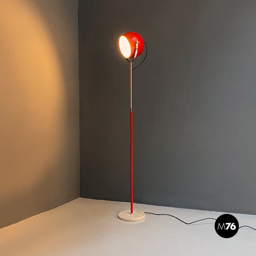 Red and chromed metal adjustable floor lamp with marble base, 1970s
