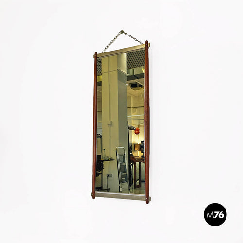 Metal, wood and red fabric adjusting height armchair with armrests, 1980s