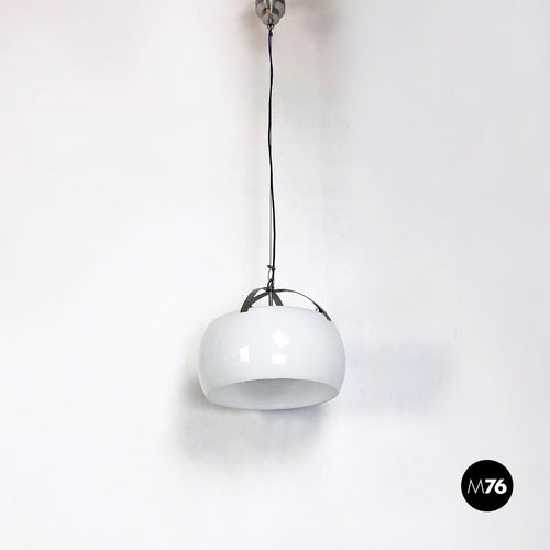Opal glass and metal Omega chandelier by Vico Magistretti for Artemide, 1962
