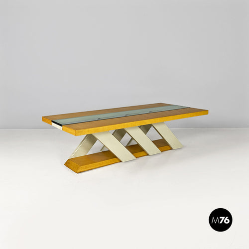Solid wood coffee table with bottle holder, 1980s