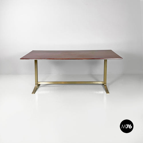 Wood top and metal base desk or dining table by Formanova, 1970s