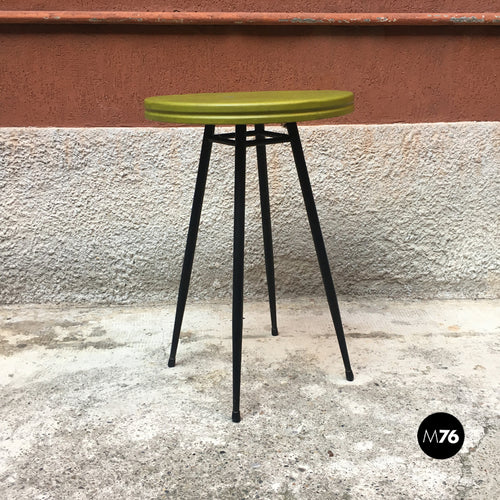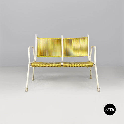 Yellow plastic and white metal two-seats bench with armrests, 1950s