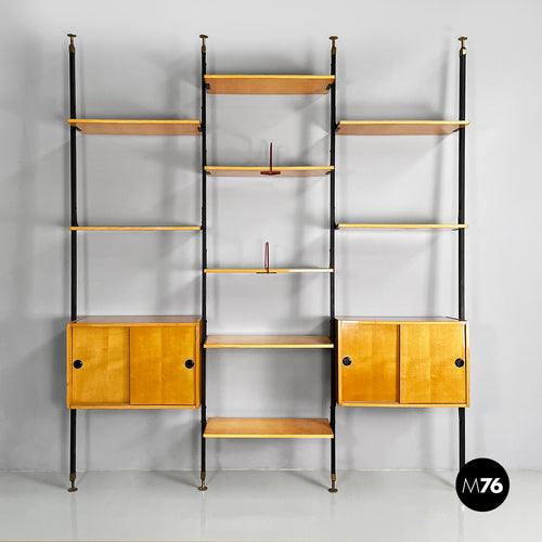 Modular bookcase in wood and black metal, 1960s