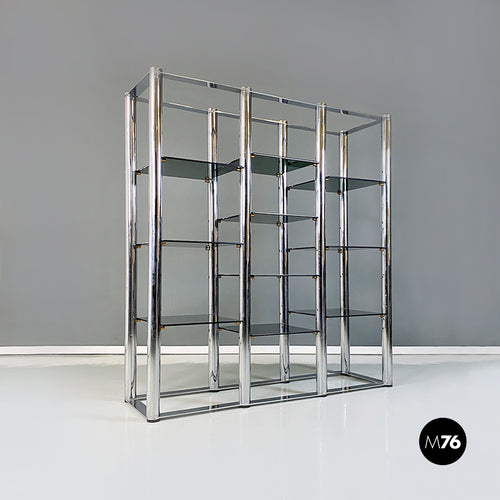 Chromed steel and smoked glass self supporting bookcase, 1970s
