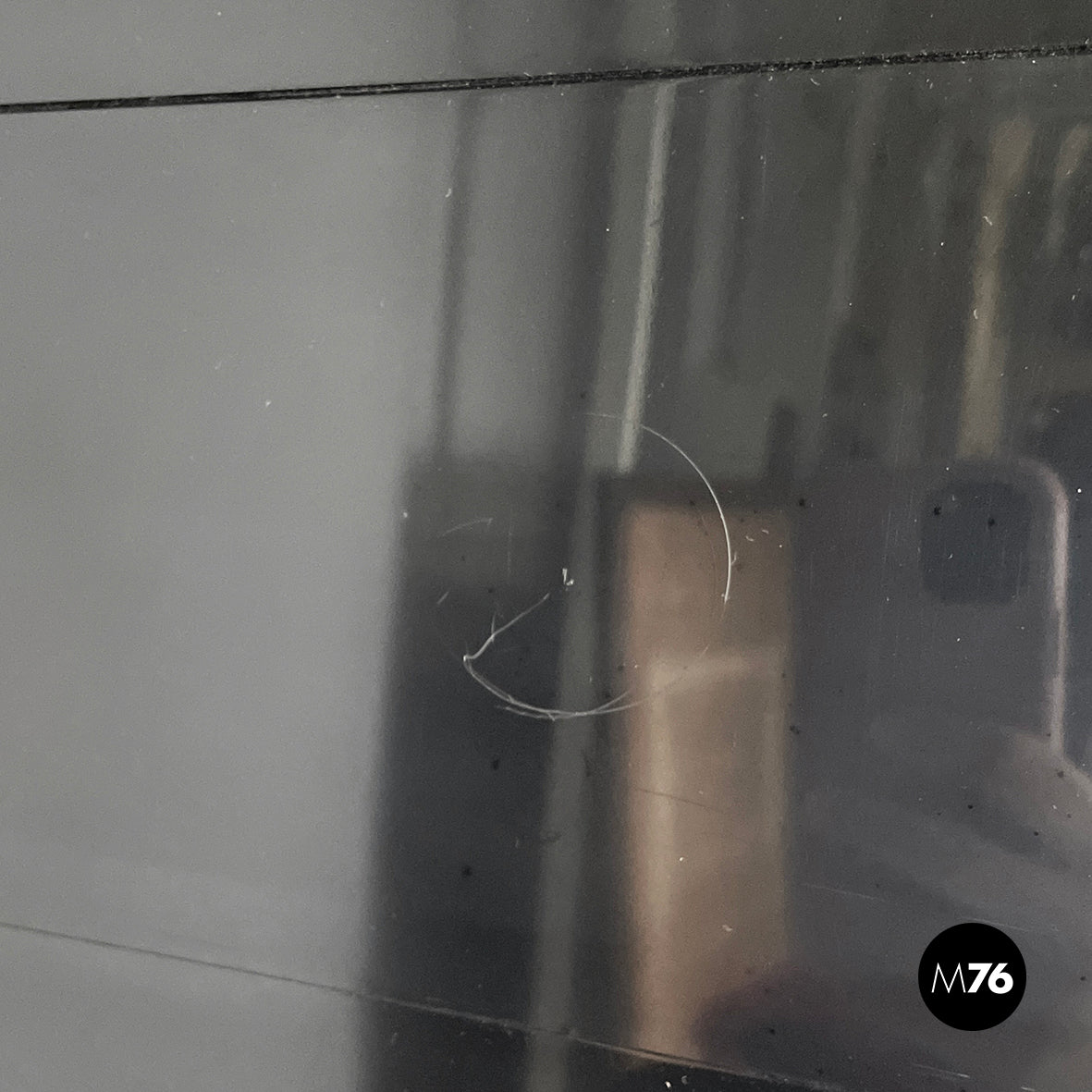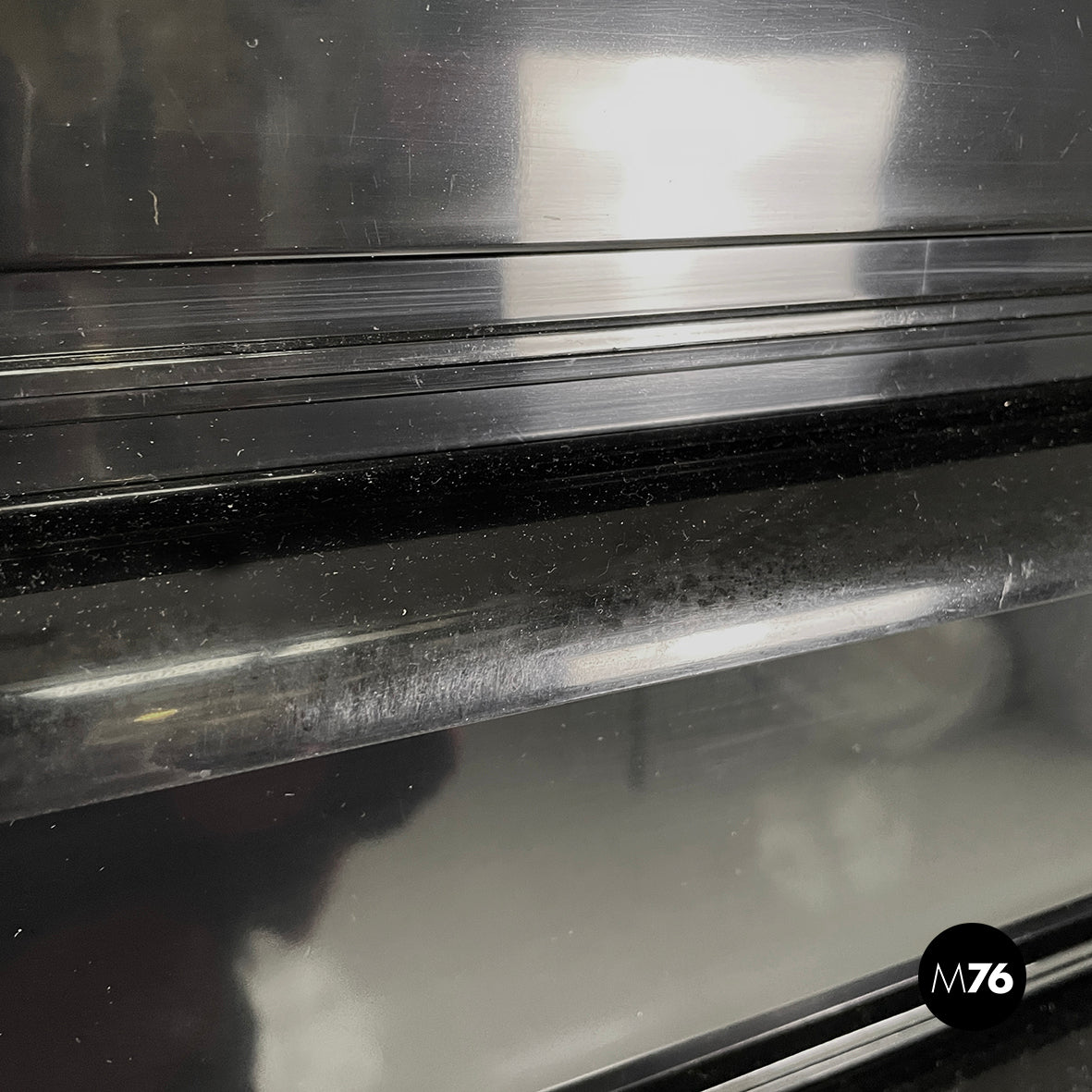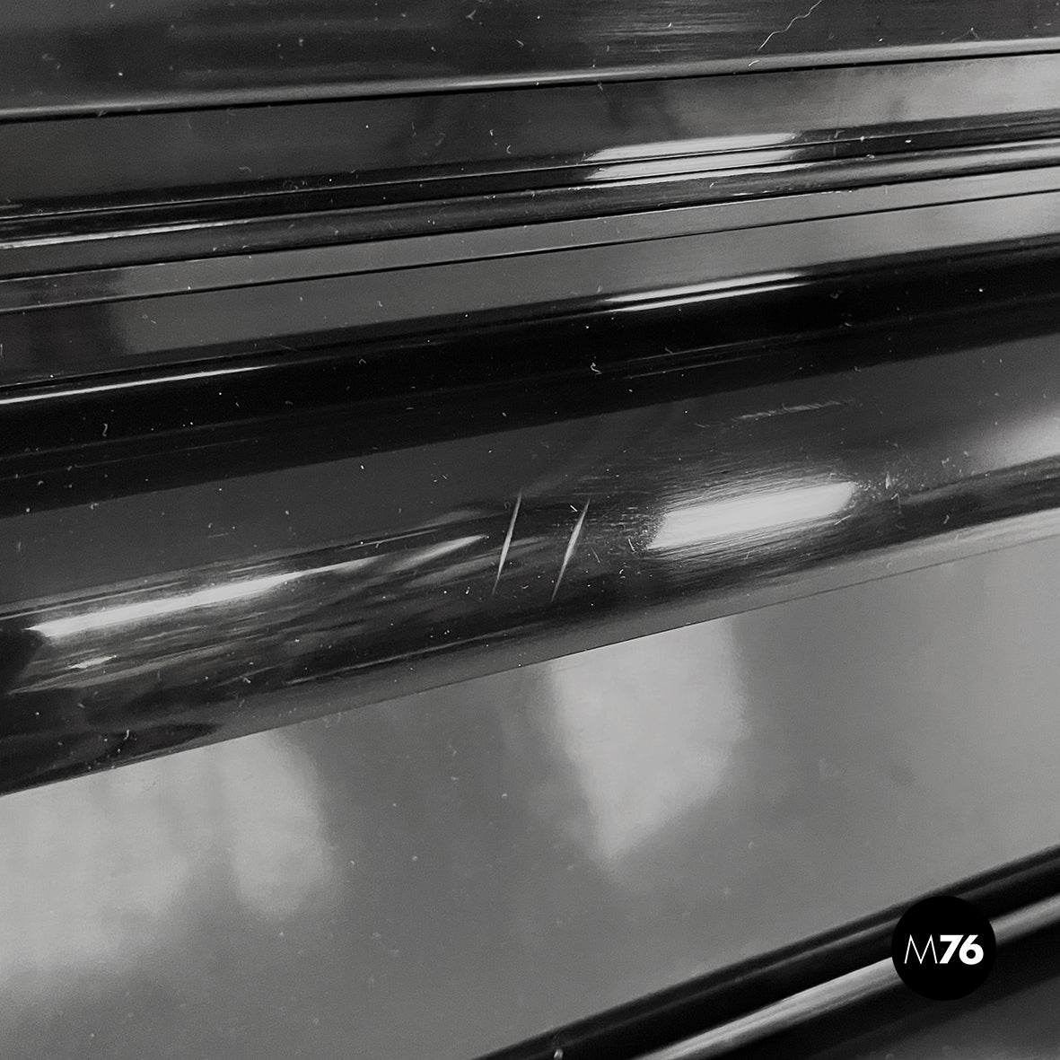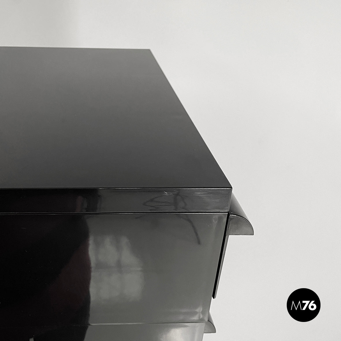 Modular chest of drawers model 4602 with a square base, made entirely of black plastic. The thirteen drawers have a rounded triangular handle, that have the same length as the drawer.