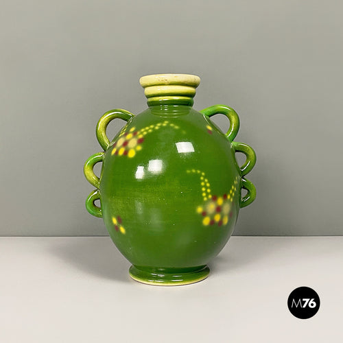 Green ceramic vase with a circular motif by Deruda, 1940s