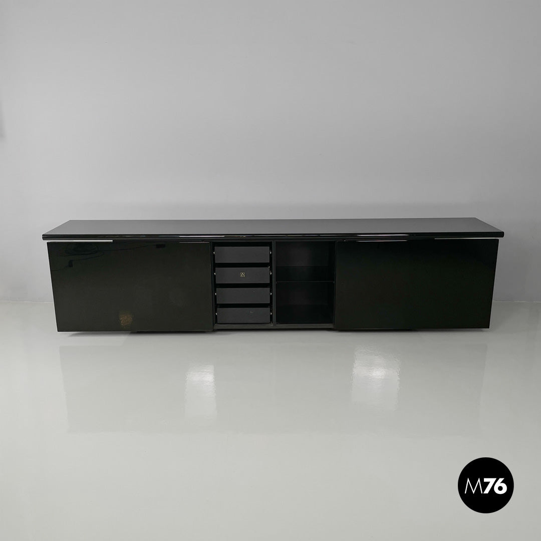 Glossy black Sheraton sideboard by Giotto Stoppino and Lodovico Acerbis for Acerbis, 1980s