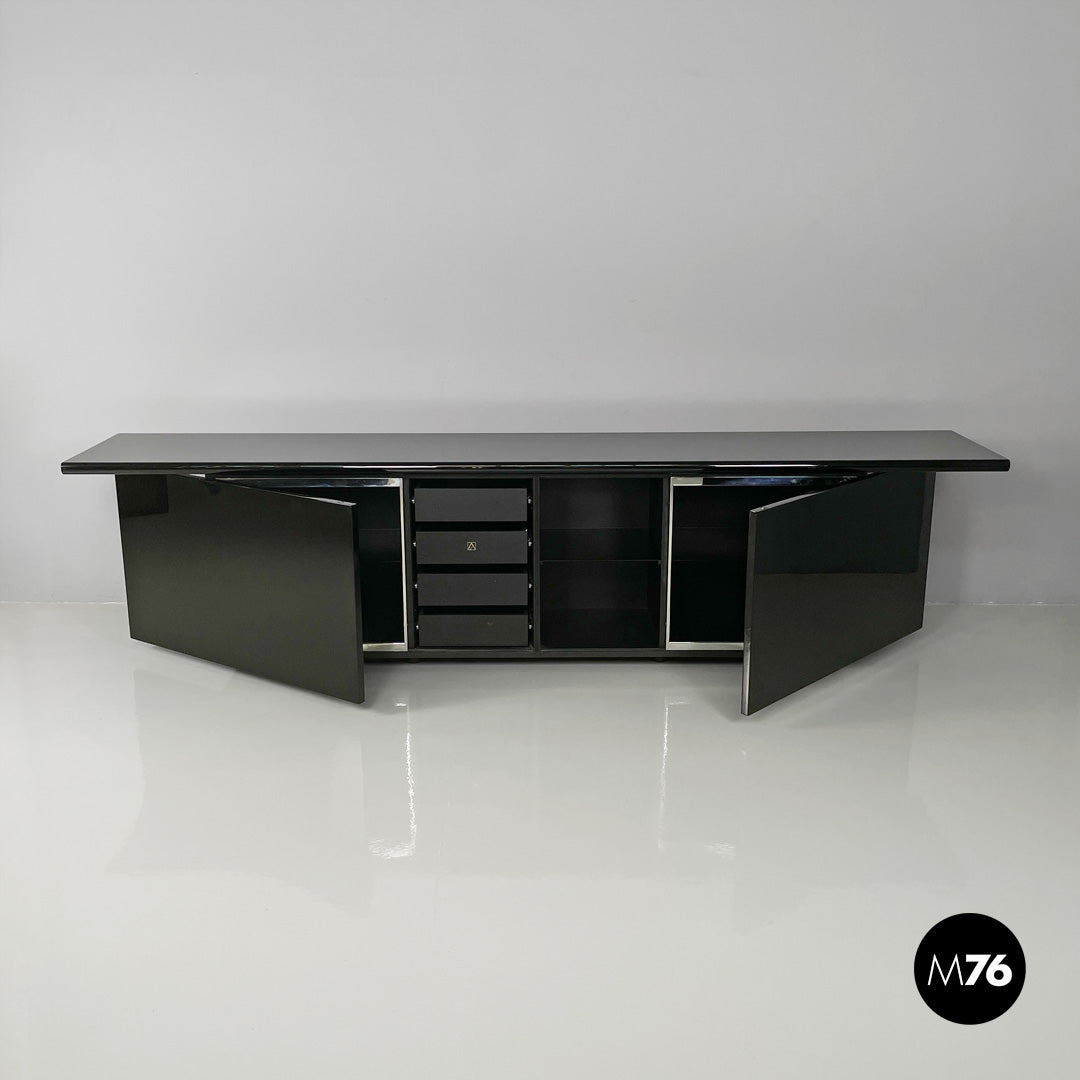 • 画像をギャラリービューアに読み込む, Glossy black Sheraton sideboard by Giotto Stoppino and Lodovico Acerbis for Acerbis, 1980s