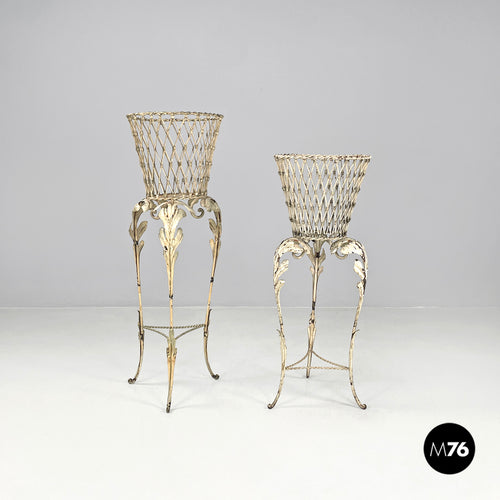 White and green wrought iron vase holder with decorative dragons, 1900s