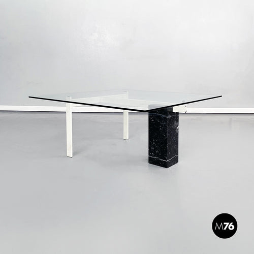 Square coffee table in glass, iron and marquinia marble, 1980s