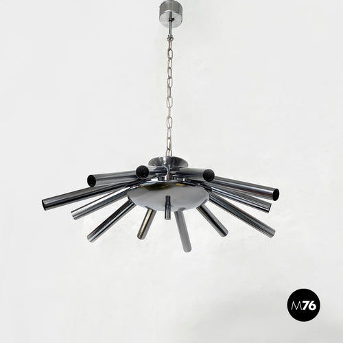 Chromed steel Splugen Brau chandelier by Achille and Pier Giacomo Castiglioni, 1960s