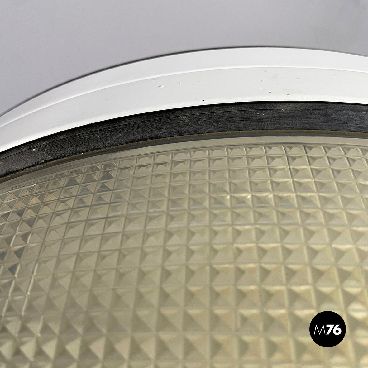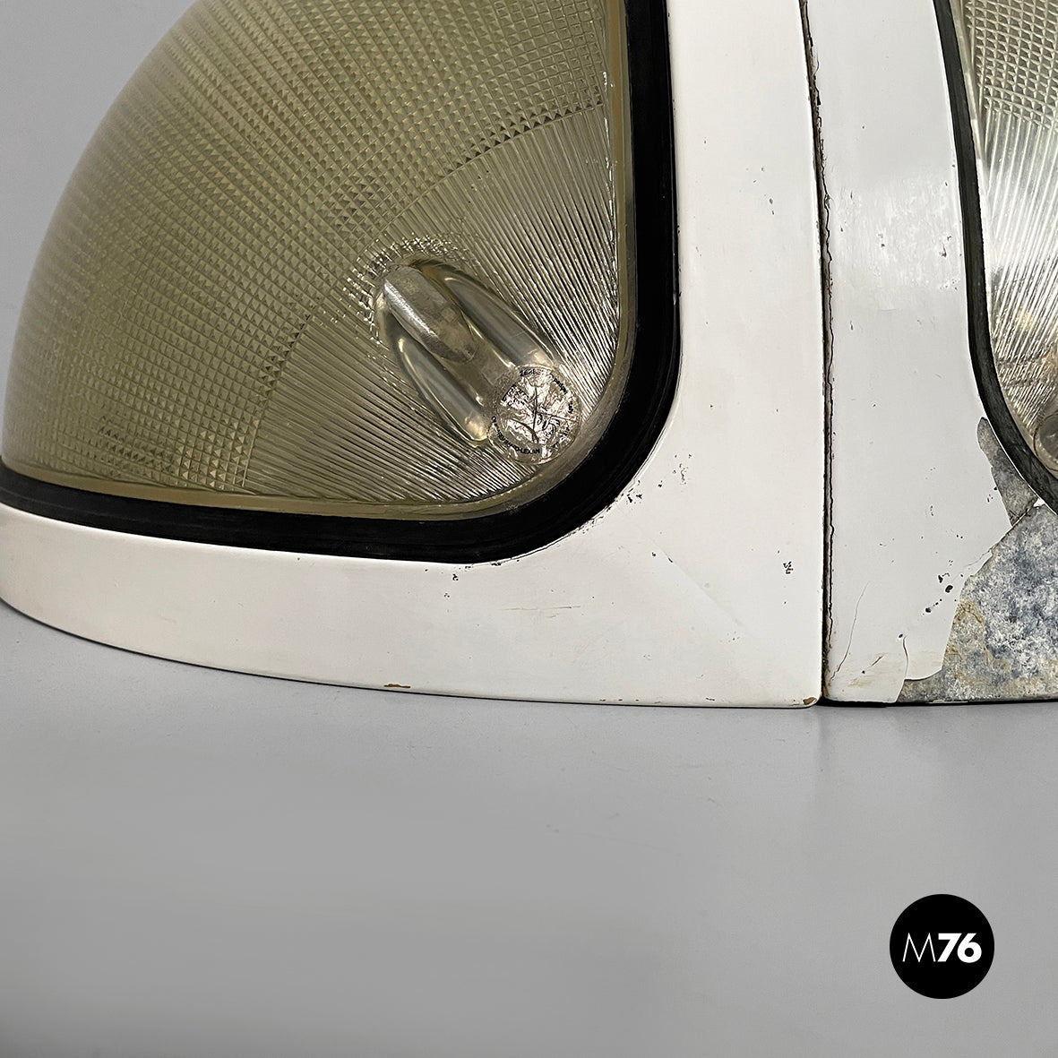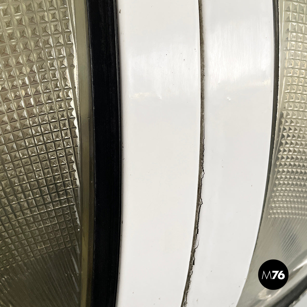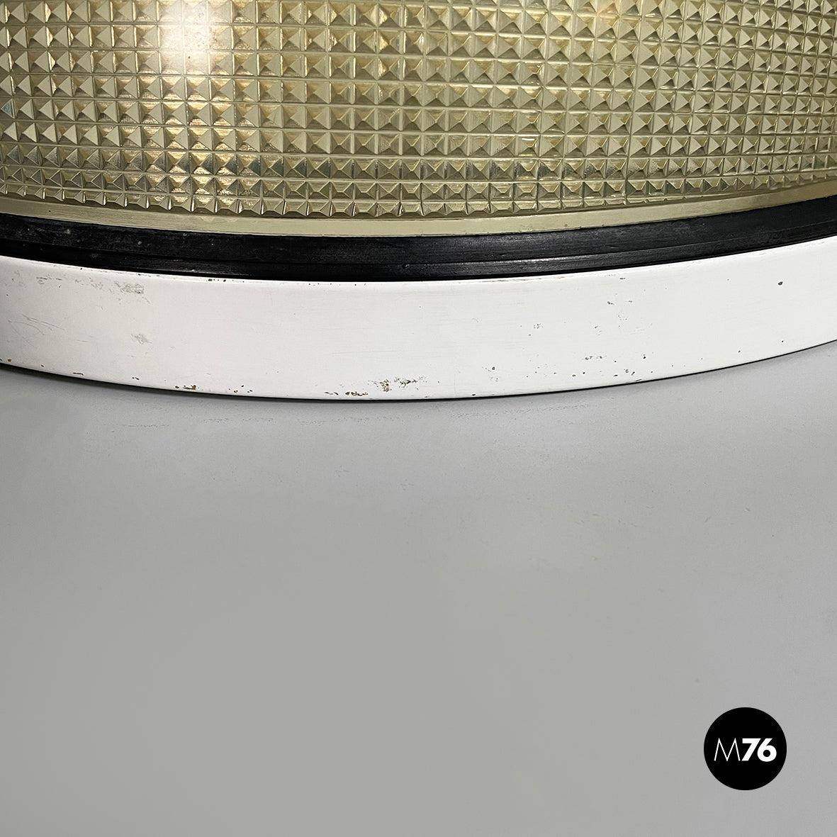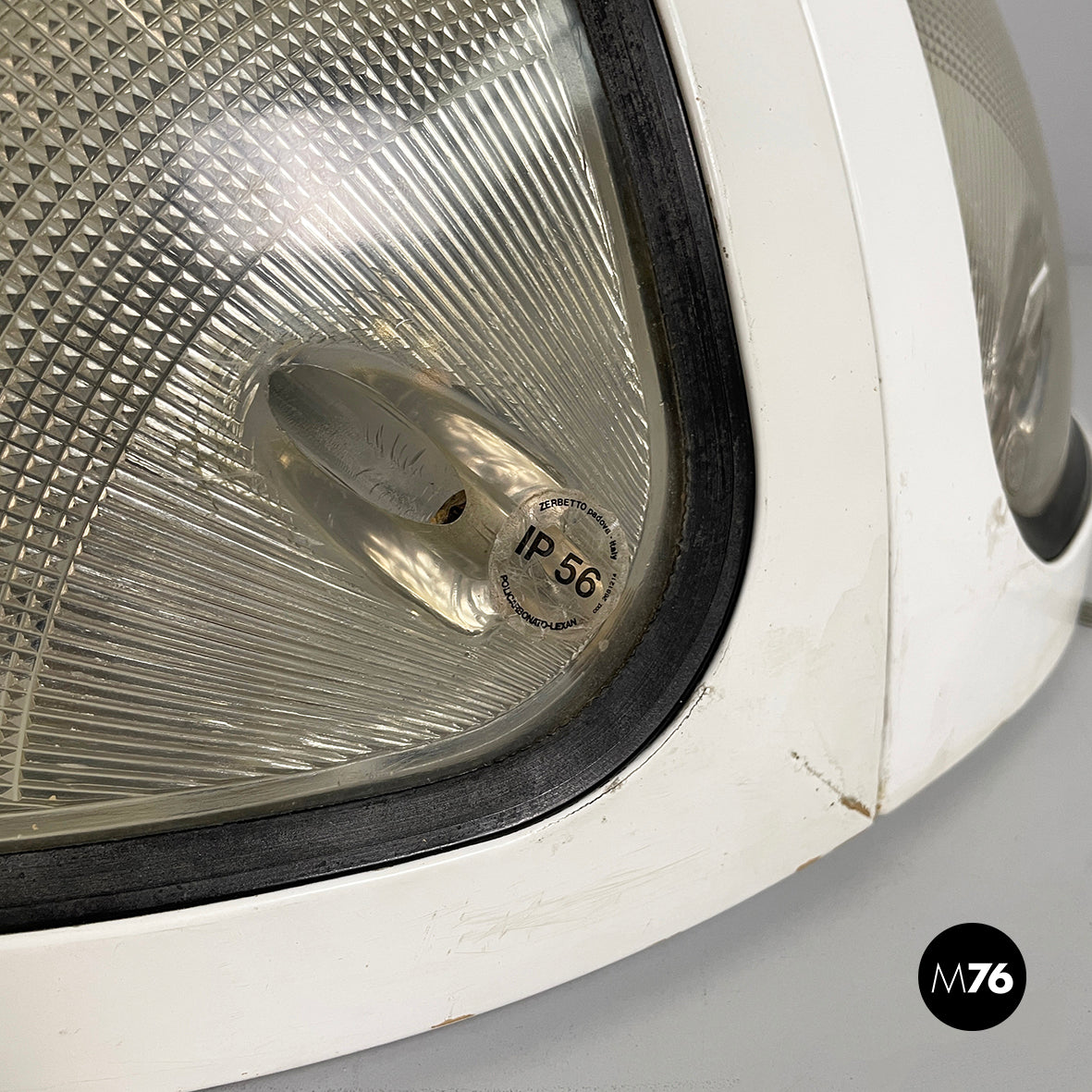 Floor lamp model Totum with semi-spherical shape. The lamp features two plastic diffusers with a white painted metal structure. Space Age style.