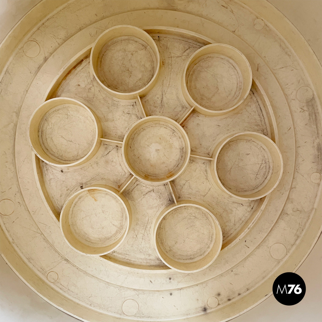 Umbrella stand model Dedalo, entirely made of plastic. The round base is made of white ABS. It has seven spaces for holding umbrellas.