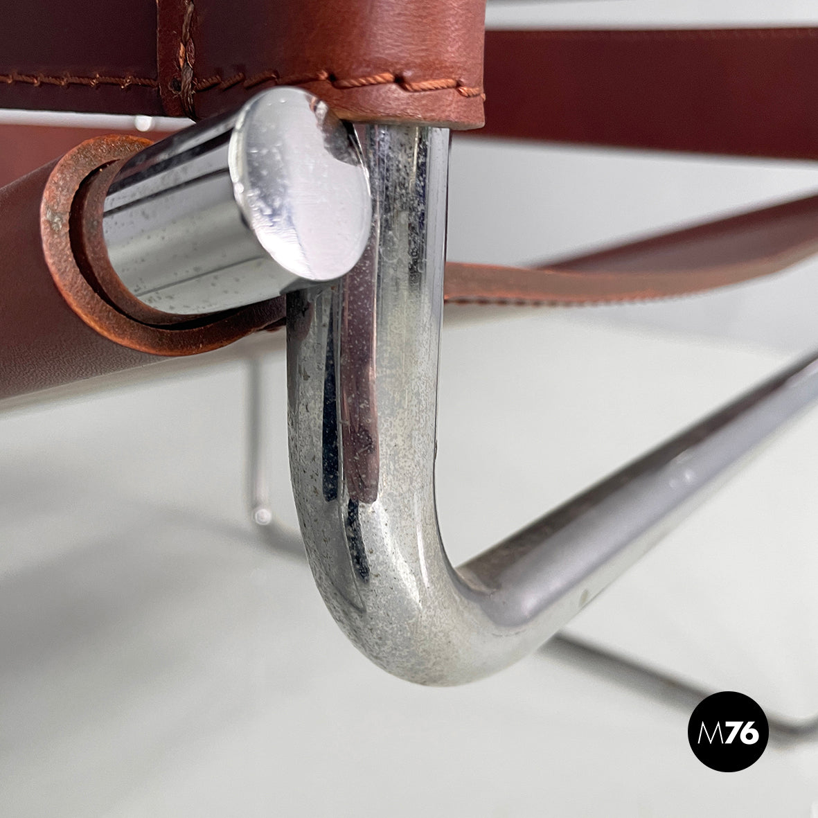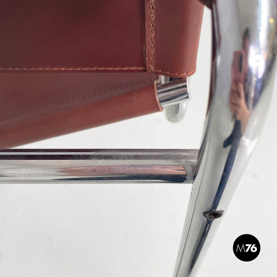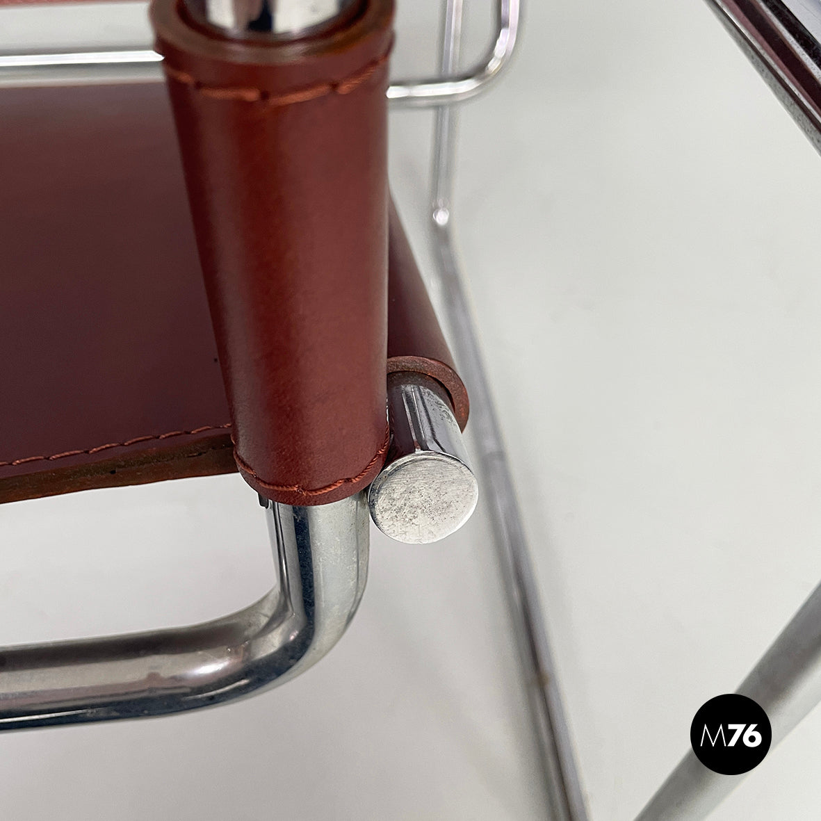 Pair of armchairs model Wassily or B3  in red-brown leather. The backrest, armrests and seat are made entirely of leather with visible stitching. The structure is made of chromed tubular steel.