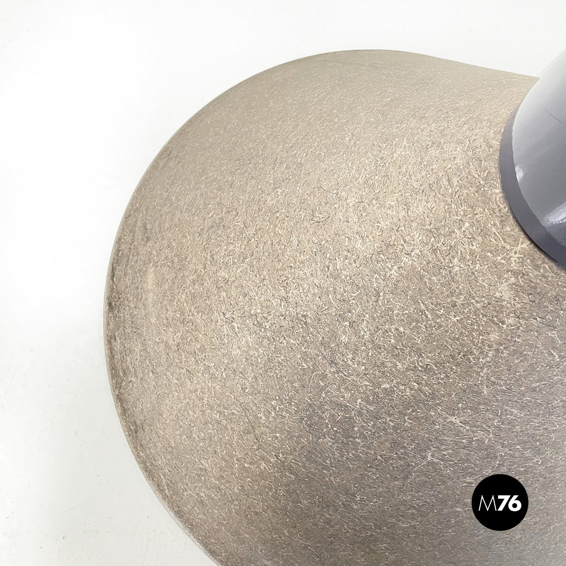 Coat stand mod. Velasca with a round base. The structure consists of a central column with a round section in gray painted metal, where the coat hangers are placed on the upper part. The hooks consist of a horizontal metal tube and a spherical black rubber knob. The truncated cone base is made of metal.